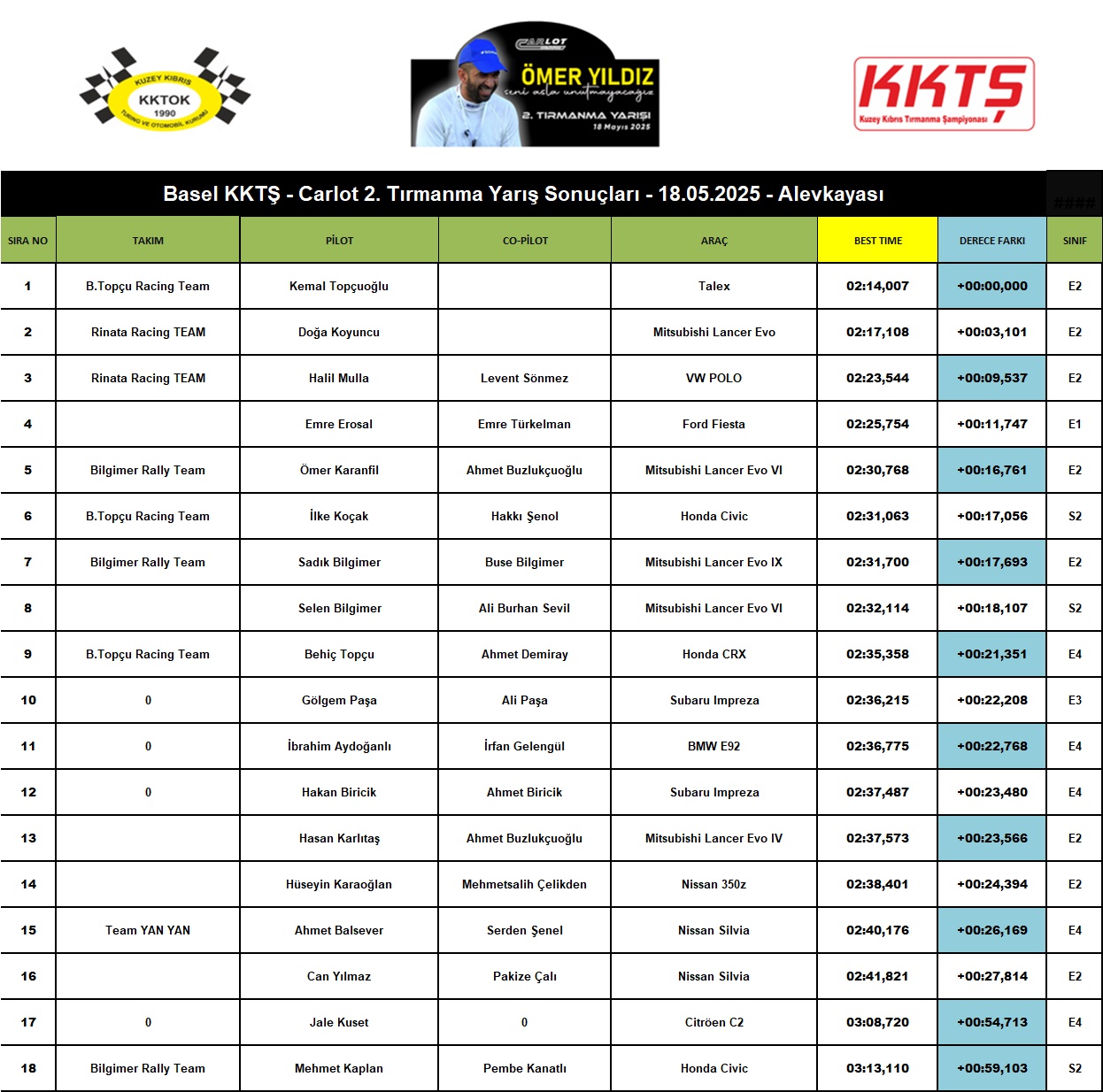 Carlot Auto 2. Tırmanma Yarışı 15 Mayıs 2025 comments kktok Ek Yönetmelik 9. Sinde Ralli Sprint 9 Mayıs 2025 comments Carlot Auto 2. Tırmanma Yarışı Canlı Dereceler 17 Mayıs 2025 comments Alakalı Gönderiler comments KKTOK GYMKHANA CHALLANGE RACE 2 CANLI DERECELER Daha Fazla comments KKTOK Gymkhana Attack 2025-2.Yarış-DriftNeu Event Park Daha Fazla comments KKTOK AKDENİZ RALLİSİ CANLI DERECELER Daha Fazla comments KKTOK Akdeniz Rallisi 2025 Daha Fazla Yorumlar